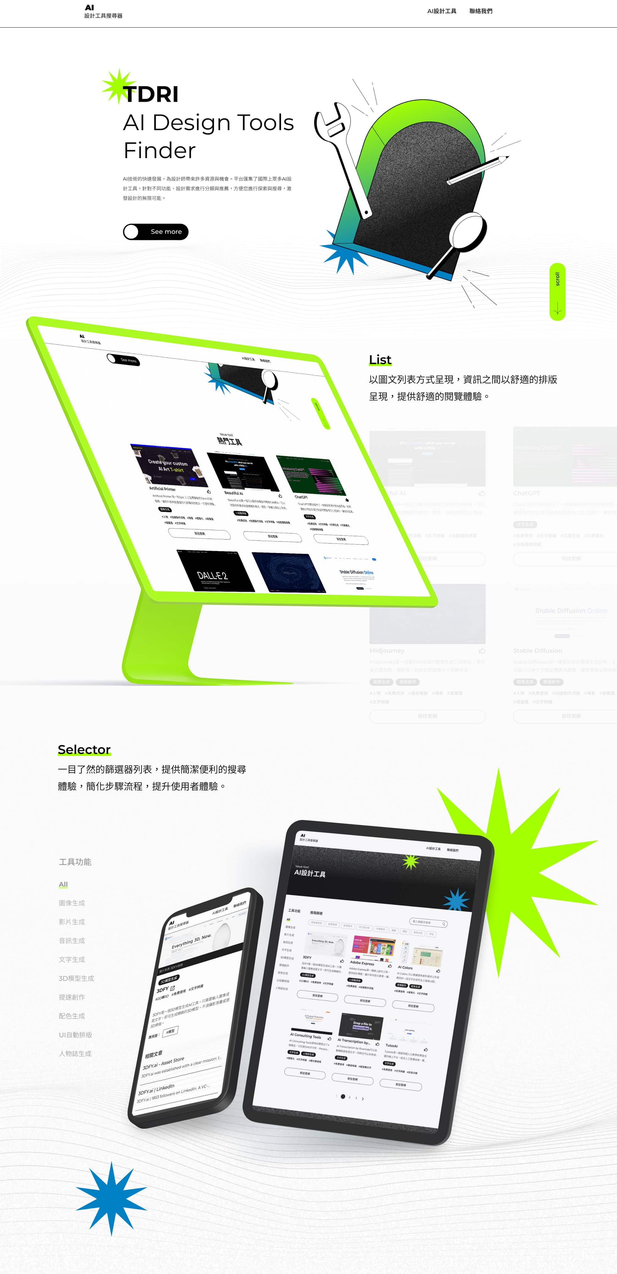 AI技術的快速發展,為設計師帶來許多資源與機會。平台匯集了國際上眾多AI設計工具,針對不同功能、設計需求進行分類與推薦,方便您進行探索與搜尋,激發設計的無限可能。