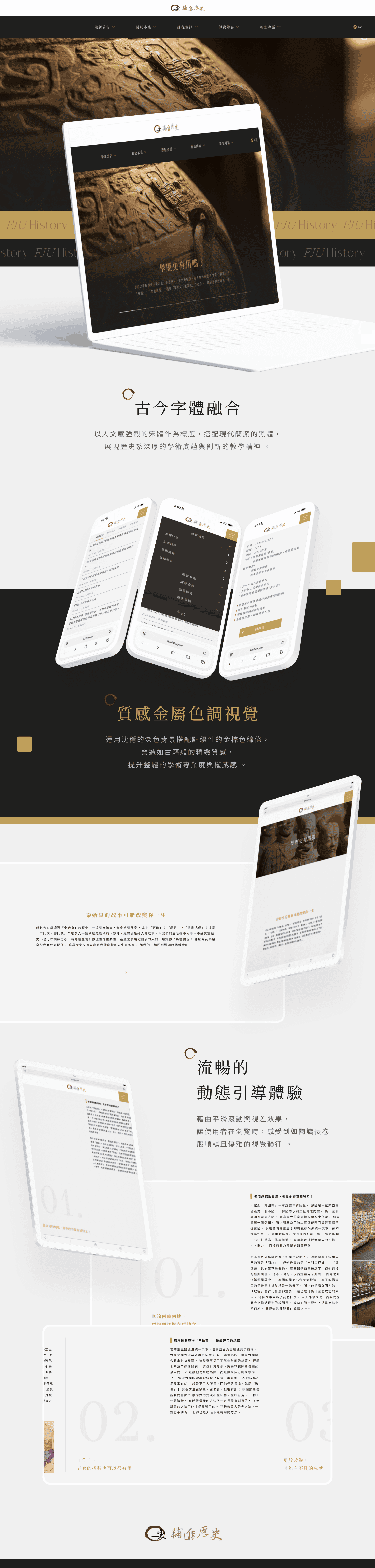 為輔仁大學進修部歷史系考生與在校生打造的專業資訊平台。網站旨在呈現該系結合傳統史學與現代應用、跨足文化創新的教學特色。其理念強調歷史不只是過去的紀錄,更是通往未來的基石,透過數位化的整合介面,提供透明的課程資訊與行政資源,展現其致力於培育具備全球視野與人文素養之歷史專業人才的教育核心。